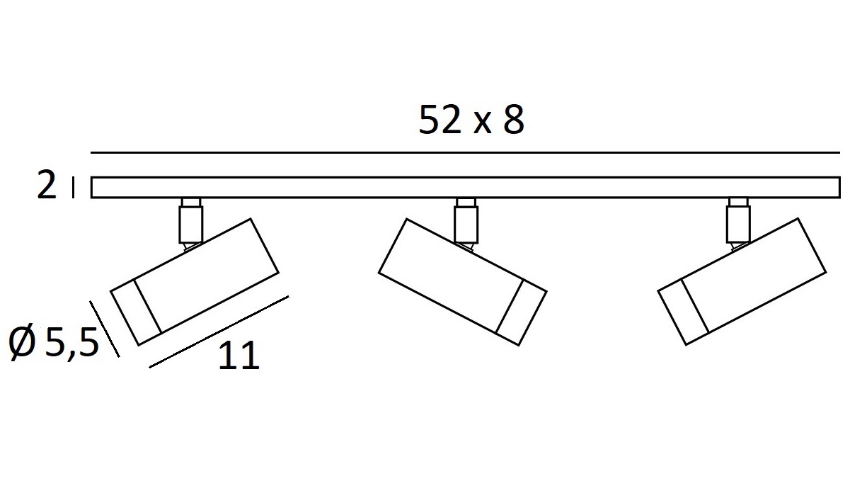 Abmessungen der Spots: Ø5,5cm, L11cm