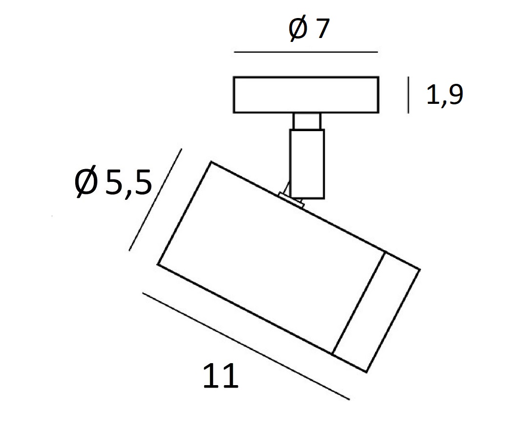 Abmessungen des Spots: Ø 5,5 cm L 11 cm