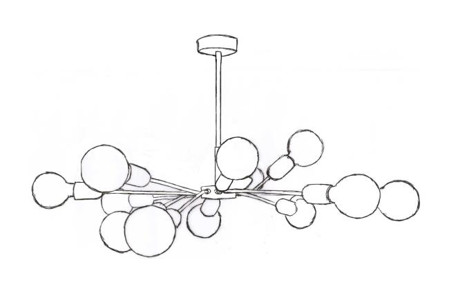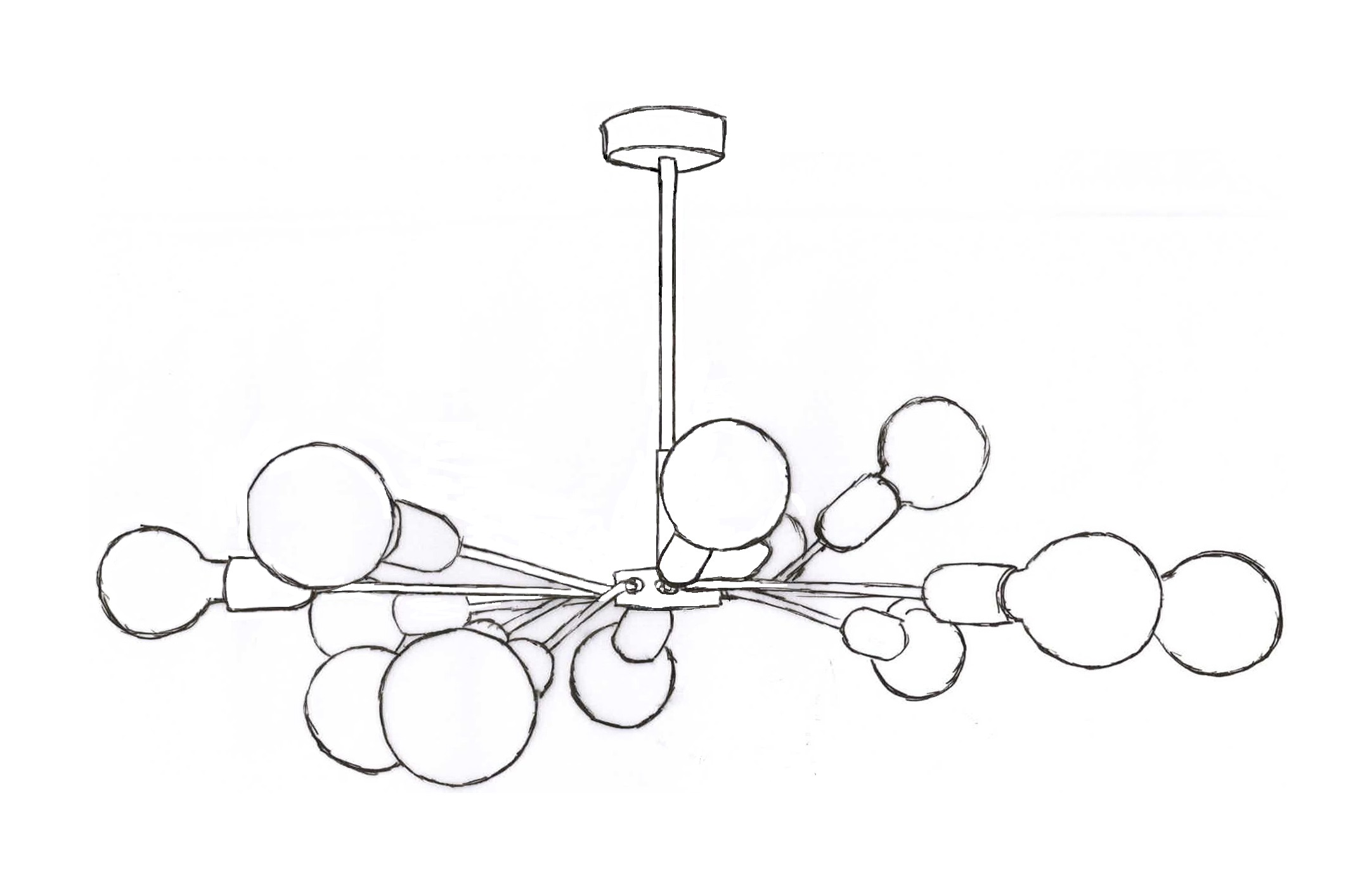 Zwölf E27 Fassungen die an festen Armen montiert sind