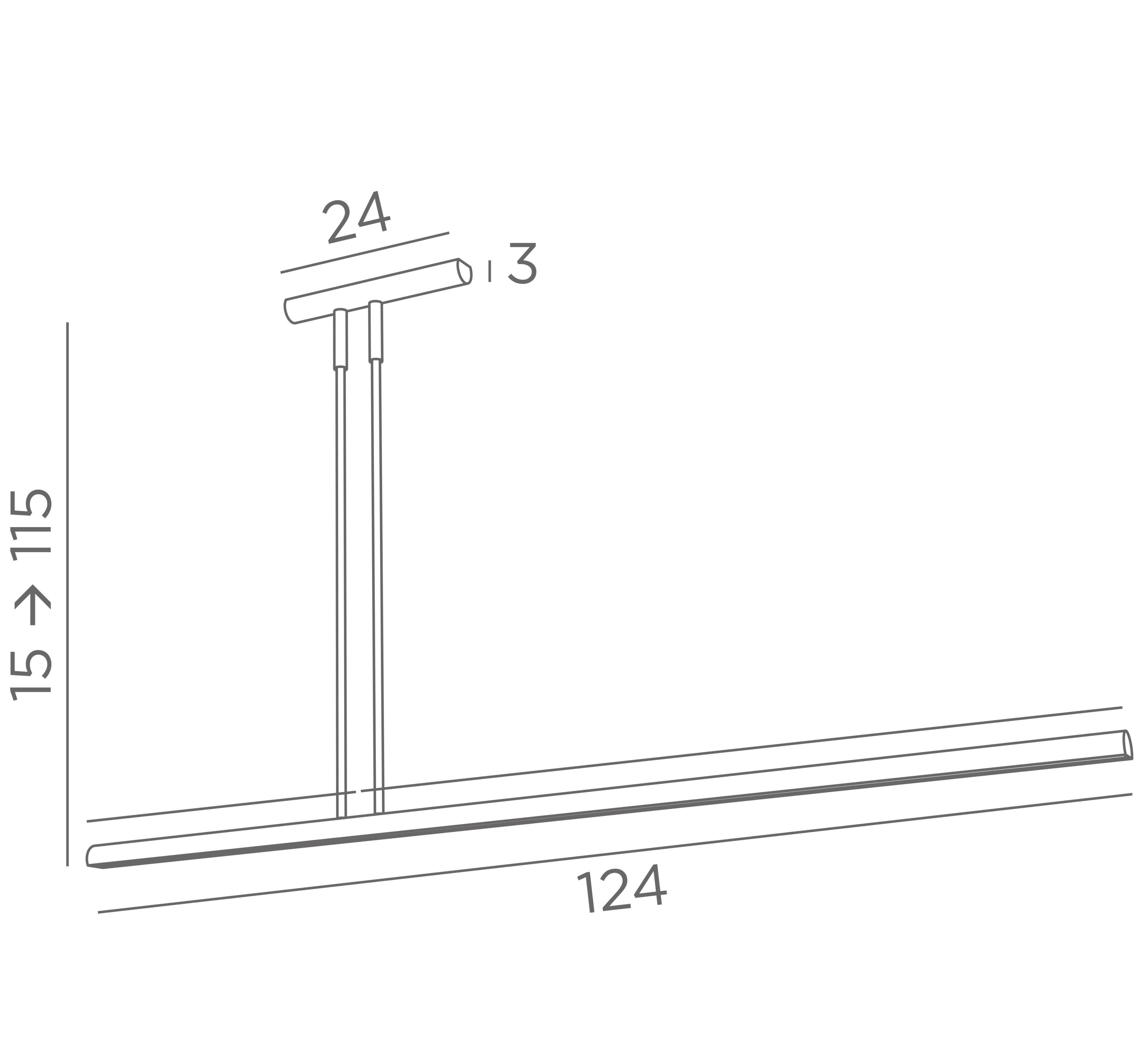 H15 →115cm L124 x 3,6cm