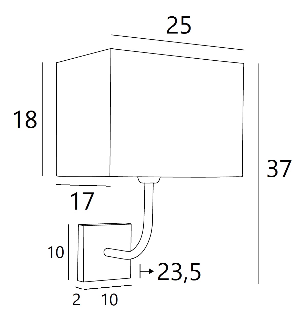 ABA 2 rect is a wall light with a rectangulair lampshade