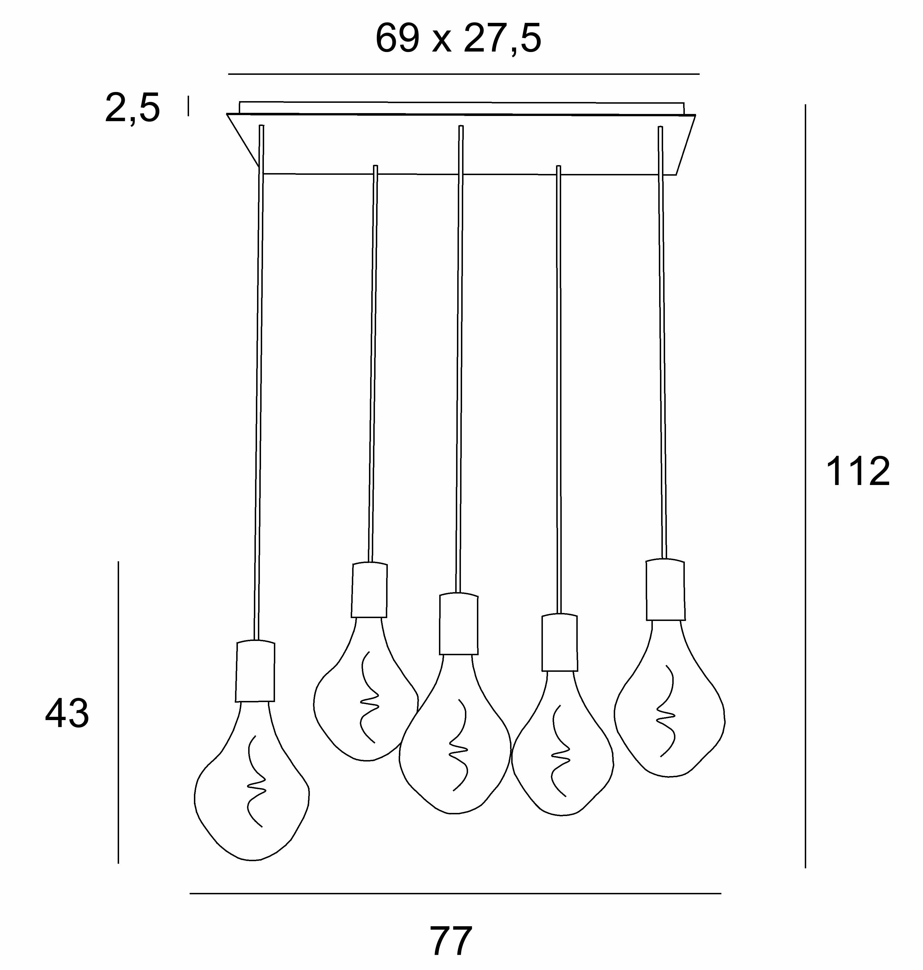 The bottom of the lamp is 163cm from the floor with a ceiling height of 275cm. On request, we can adapt the cables to another ceiling height, see ORDER FORM