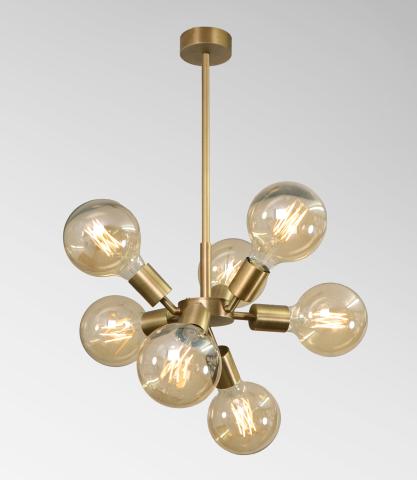 OURIS 1 is a complete brass suspension and, with its bundle of decorative light bulbs, perfectly matches what is currently on the market