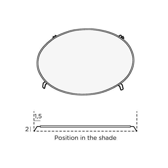 Het bestaat uit een cirkel met vier kleine haken die zich vastknijpen aan de onderkant van de lampenkap