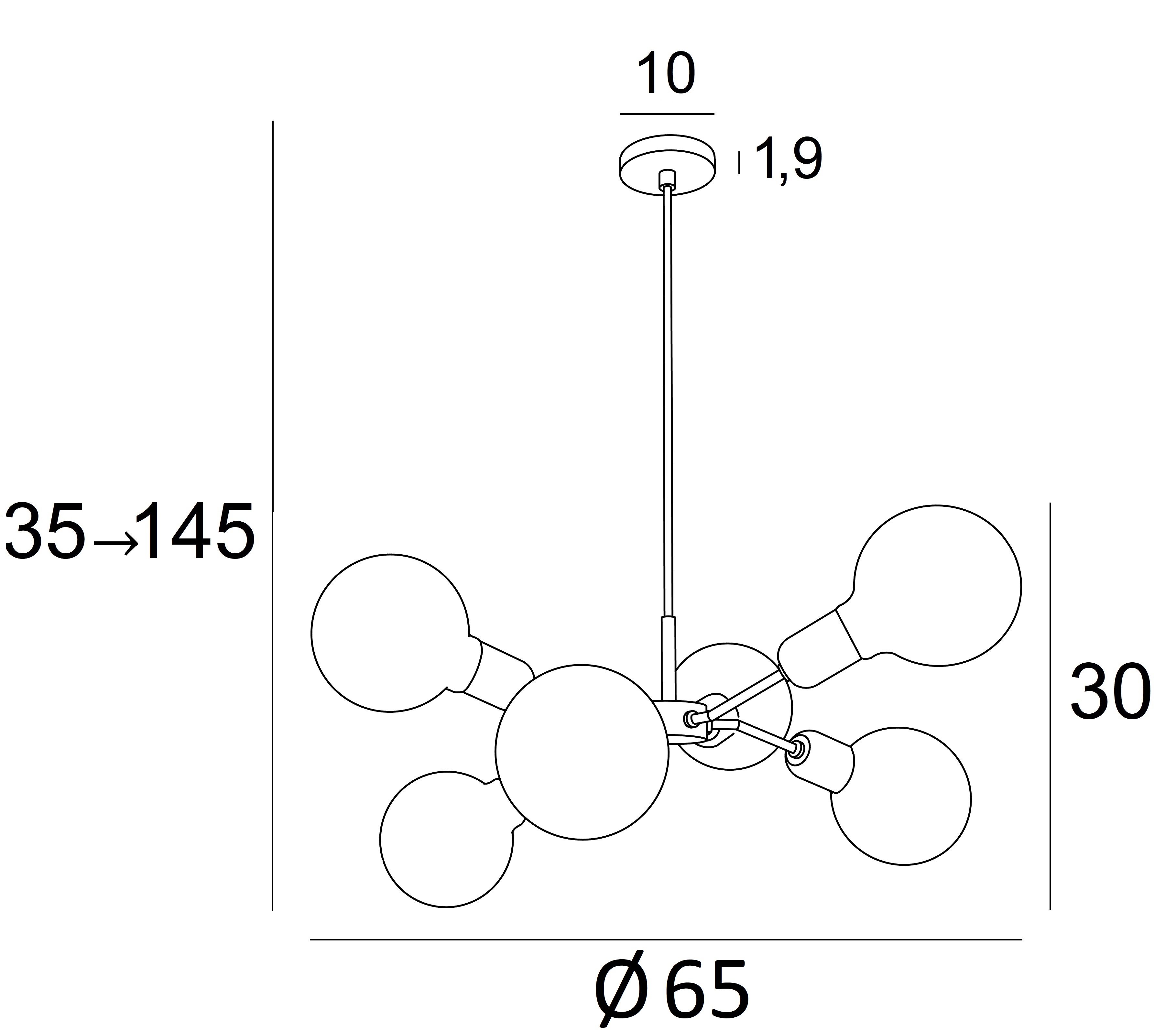 POLPO 1 is een volledige, messing hanglamp en sluit met zijn bundel van decoratieve gloeilampen, perfect aan bij wat momenteel op de markt aanwezig is